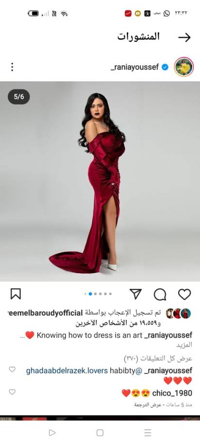 ونشرت رانيا ، عبر صفحتها الشخصية على انستجرام. صورها التى خضعت خلال جلسة تصوير مرتديه فستان أحمر جرئ مع مكياج جذاب وعقد بسيط وتركت شعرها منسدلً، معلقة عليها: معرفة كيفية ارتداء الملابس هو الفن.