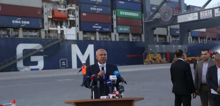 وزير النقل يشهد استقبال السفينة”CMA ” بميناء الإسكندرية