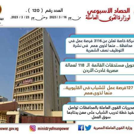 بإنفوجراف.. نشاط القوى العاملة في 7 أيام إبرازها فرص عمل للشباب