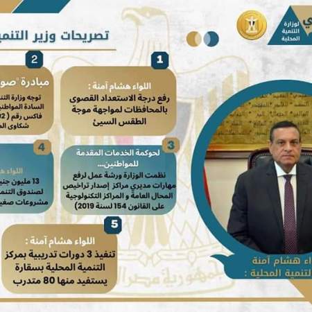 إنفوجراف..ننشر الحصاد الأسبوعي لنشاط وزارة التنمية المحلية