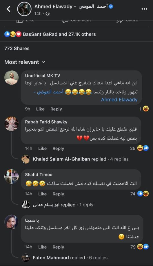 وكتب احمد العوضى عبر صفحته الشخصية على الفيسبوك : أنت الذي حلفتني وحلفت لي ..وحلفت أنك لا تخون فخنتني، وحلفت أنك لا تميل مع الهوى ..أين اليمين؟ وأين ما عاهدتني؟”.