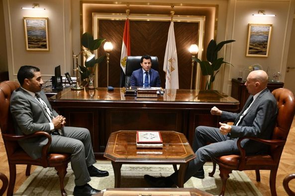 التقي الدكتور أشرف صبحي وزير الشباب والرياضة، المهندس شريف العريان رئيس الاتحاد المصري للخماسي الحديث امين عام اللجنة الأولمبية المصرية، لمناقشة استعدادات مصر لاستضافة بطولة العالم للشباب تحت 17 سنة، للخماسي الحديث منتصف يوليو المقبل، على ملاعب الاكاديمية العربية للعلوم و التكنولوجيا و النقل البحري بأبي قير بالإسكندرية .