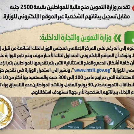 «مجلس الوزراء» ينفي تقديم «التموين» منح مالية للمواطنين