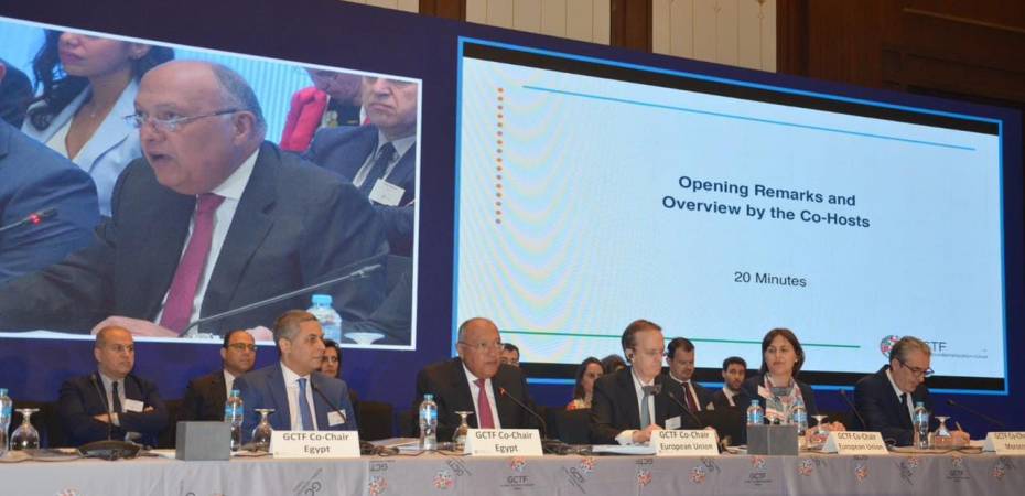 وقد ألقى وزير الخارجية كلمة أشار فيها إلى أن تولي مصر للرئاسة المشتركة للمنتدى يأتي في توقيت يواجه فيه المجتمع الدولي تحديات ضخمة تفاقم من مسببات الإرهاب، وهو ما يتطلب تعزيز أطر التعاون الدولي لمكافحة هذه الظاهرة، منوهاً إلى أنه على الرغم مما تحقق من نجاحات دولية في مجال مكافحة الإرهاب وهزيمة تنظيم داعش في سوريا والعراق، فإن خطر هذه الظاهرة لا يزال حاضراً ويتعين مواصلة جهود التصدى له.