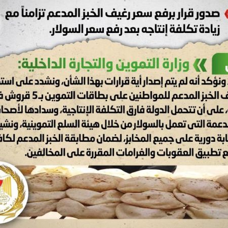الحكومة تنفى رفع سعر رغيف الخبز المدعم مع زيادة التكلفة بسبب سعر السولار
