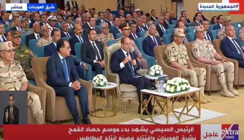 أكد الرئيس عبد الفتاح السيسي، أن الدولة المصرية تسعي للحصول على مليون طن قمح من المشروعات الزراعية الجديدة في توشكي والعوينات.