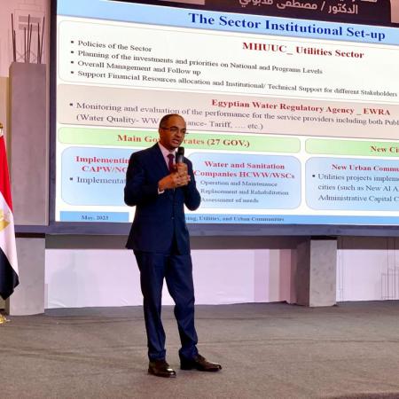 نائب وزير الإسكان بعرض تقديمي بعنوان ” تجربة مصر في البناء والتنمية.. قصة نجاح تستحق التصدير”