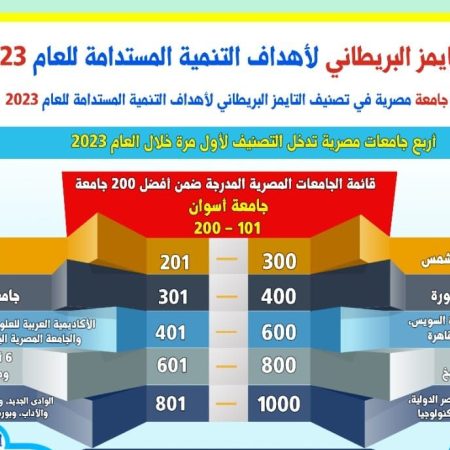 التعليم العالى: إدراج 37 جامعة مصرية في تصنيف “التايمز” لأهداف التنمية المستدامة للعام 2023