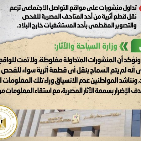 الحكومة تنفى نقل قطع أثرية من أحد المتاحف المصرية للفحص بأحد المستشفيات خارج البلاد