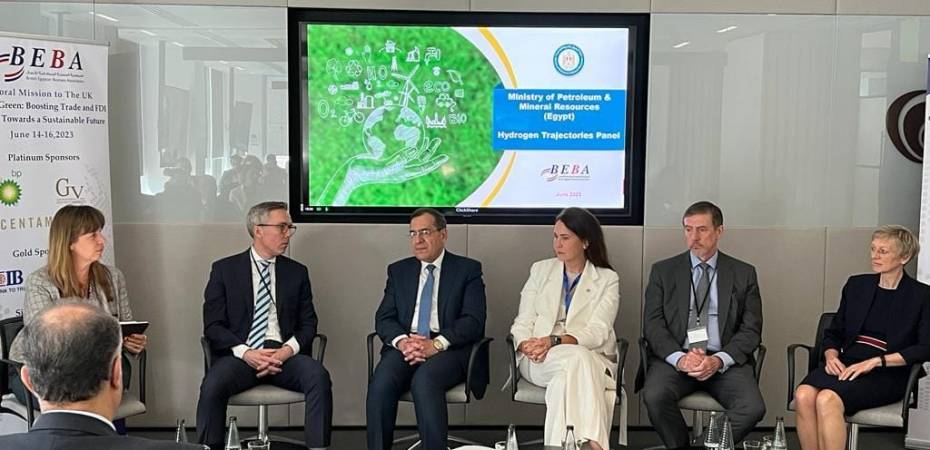 شارك المهندس طارق الملا وزير البترول والثروة المعدنية كمتحدث رئيسى فى جلسة حوارية بعنوان “مسارات الهيدروجين” ضمن فعاليات البعثة المصرية للترويج للاستثمار الأخضر فى العاصمة البريطانية لندن، وضمت الجلسة كلاً من جين توجود الراعى الاستراتيجى الحكومى لاقتصاد الهيدروجين فى المملكة المتحدة والرئيس التنفيذى لقطاع التقنيات المساعدة بشركة جونسون ماتى، وتيرييه بيلسكوج الرئيس التنفيذى لشركة سكاتك النرويجية، وآنيا إيزابيل نائب الرئيس التنفيذى للغاز والطاقة منخفضة الكربون فى شركة بى بى، ومايك سكولي الرئيس التنفيذى لشركة جلوبليك للطاقة ، وأدارت الجلسة هايكي هارمجارت المدير التنفيذى لمنطقة جنوب وشرق المتوسط بالبنك الأوروبى لإعادة الإعمار والتنمية.