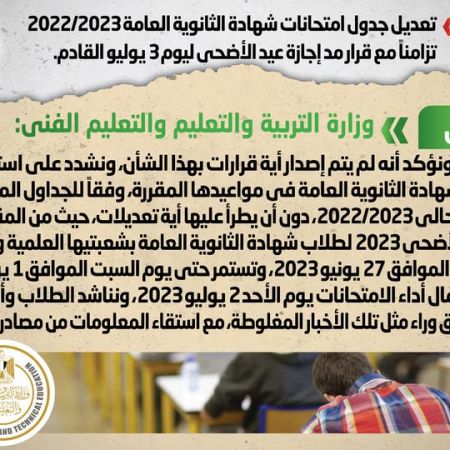 الحكومة تنفى تعديل جدول امتحانات شهادة الثانوية العامة تزامناً مع قرار مد إجازة عيد الأضحى