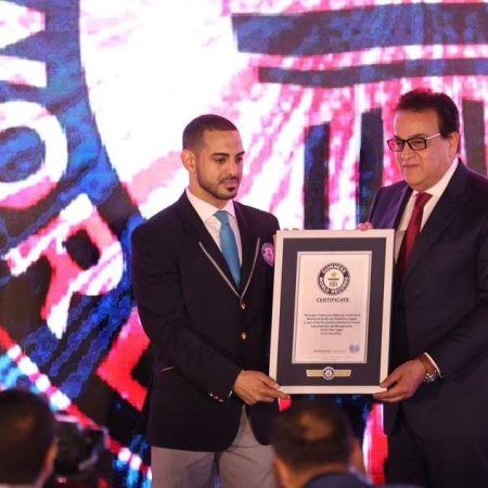 وزير الصحة يتسلم وثيقة من موسوعة جينيس بتحقيق أكبر رقم قياسي للتوعية بالسرطان في العالم