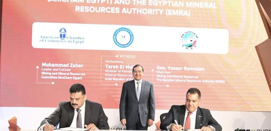 على هامش منتدى مصر للتعدين ٢٠٢٣ ، شهد المهندس طارق الملا وزير البترول والثروة المعدنية ، توقيع بروتوكول تعاون بين الهيئة المصرية العامة للثروة المعدنية وغرفة التجارة الأمريكية بمصر لتنفيذ المرحلة الثانية من برنامج بناء القدرات في قطاع التعدين والذى يقام خلال الفترة من يوليو 2023 إلى يوليو 2024.