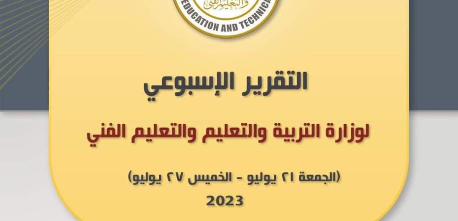 أصدر المركز الإعلامي لوزارة التربية والتعليم والتعليم الفني التقرير الأسبوعي للوزارة خلال الفترة من (الجمعة ٢١ يوليو– الخميس ٢٧ يوليو) ويتضمن ما يلي: