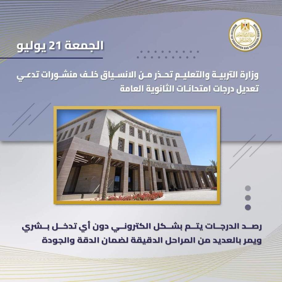 نشرت وزارة التربية والتعليم بيانا تحذر فيه من الانسياق خلف منشورات تدعي إمكانية تعديل درجات طلاب الثانوية العامة في الامتحانات.