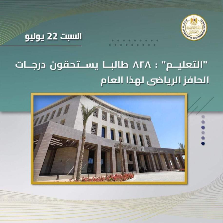 أعلنت وزارة التربية والتعليم والتعليم الفنى، عن أعداد كشوف الطلاب المستحقين لدرجات الحافز الرياضي لعام ٢٠٢٣، تمهيدا لإرسالها لوزارة التعليم العالي والبحث العلمي، ومكتب تنسيق القبول بالجامعات لإضافتها لنتيجة الطلاب.