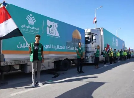 26 شاحنة مساعدات تصل إلى الجانب الفلسطيني من معبر رفح