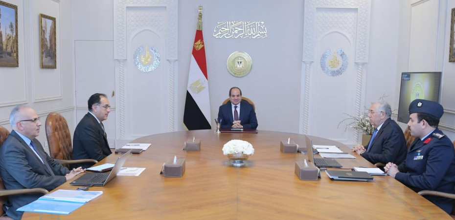 جاء ذلك خلال اجتماع الرئيس السيسي مع رئيس مجلس الوزراء الدكتور مصطفى مدبولي، ووزيري الزراعة واستصلاح الأراضي السيد القصير، والموارد المائية والري الدكتور هاني سويلم والمدير التنفيذي لجهاز مستقبل مصر للتنمية المستدامة العقيد الدكتور بهاء الغنام .