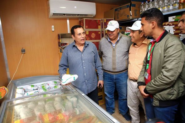 جاء ذلك خلال الزيارة التفقدية التى قام بها اللواء عمرو عبد الوهاب لمنطقة غرب المنيا وتفقده لمنفذ بيع المنتجات الغذائية التابعة للشركة هناك، حيث شدد خلال لقائه بقيادات المناطق والعاملين بمنافذ بيع المنتجات الغذائية بأراضى المشروع على ضرورة توفير كميات كبيرة من اللحوم الطازجة بأنواعها والدواجن والأسماك، وكذلك مختلف المواد والسلع الغذائية الأساسية والإستراتيجية، بما يلبى احتياجات رواد المنافذ من المستهلكين وبأسعار تقل عن مثيلاتها فى الأسواق.