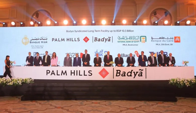 نجح تحالف مصرفي يضم بنك مصر بصفته المرتب الرئيسي الأولي ومسوق التمويل ووكيل التمويل وبنك الحساب وبنك الحساب الوسيط، والبنك الأهلي المصري بصفته المرتب الرئيسي الأولي ومسوق التمويل، وبنك القاهرة بصفته المرتب الرئيسي الأولي ومسوق التمويل وبنك حساب استهلاك خدمة الدين، وبنك الإمارات دبي الوطني بصفته مرتب رئيسي ووكيل الضمان، وبنك أبو ظبي التجاري بصفته مرتب، وبنك البركة بصفته مرتب، والبنك الأهلي الكويتي- مصر بصفته مرتب، وبنك التنمية الصناعية بصفته مقرض؛ بمنح شركة بالم للتنمية العمرانية أحد شركات بالم هيلز قرضا مشتركا طويل الأجل بقيمة تصل إلى 10.3 مليار جنيه مصري، بهدف التمويل الجزئي للتكلفة الاستثمارية للمشروع العمراني ” باديا ” بمدينة أكتوبر الجديدة .