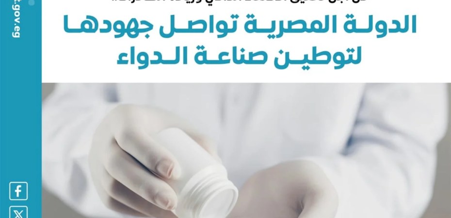 نشر المركز الإعلامي لمجلس الوزراء، عددًا من الإنفوجرافات عبر منصاته على مواقع التواصل الاجتماعي، استعرض من خلالها جهود الدولة المتواصلة لتوطين صناعة الدواء، وذلك في إطار سعيها لترسيخ مكانتها كمركز إقليمي في هذا المجال، استنادًا إلى رؤية طموحة تستهدف دعم واحدة من أهم الصناعات الاستراتيجية، بما يفتح آفاقًا جديدة لتحقيق الاكتفاء الذاتي وزيادة الصادرات.