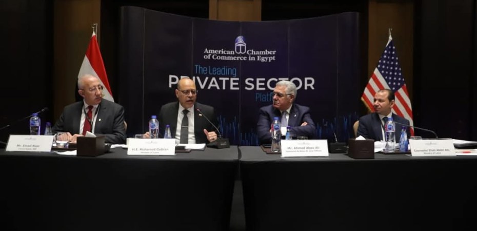 افتتح معالي وزير العمل/ محمد جبران ، اليوم الثلاثاء، ورشة عمل ، تحت رعاية لجنتي الشؤون القانونية ،والموارد البشرية بالغرفة التجارية الأمريكية بمصر ، والمنعقدة بأحد فنادق القاهرة ، وذلك إطار خطة “الوزارة” للتوعية بقانون العمل الجديد …وقال الوزير جبران أن هذه الندوة تأتي في إطار سلسلة من اللقاءات تنظمها الوزارة بهدف التوعية بقانون العمل الجديد الذي صادق عليه فخامة الرئيس عبدالفتاح السيسي رئيس الجمهورية ، مؤخرا ،بعد موافقة مجلس النواب عليه ، وبعد إجراء تشاور اجتماعي جاد بشأنه شاركت فيه كل الجهات والمؤسسات المعنية، حتى يصدر تشريع يحقق المزيد من العدالة والتوازن في علاقات العمل بين طرفي العملية الإنتاجية وأصحاب الأعمال ..وشهدت الندوة التي حاضر فيها السيد إيهاب عبدالعاطي، المستشار القانوني لوزارة العمل ،شرحا،و نقاشات حول مواد القانون ،التي حرصت، وتوافقت جميع الأطراف من ممثلي الحكومة وأصحاب الأعمال والعمال من خلالها على تحقيق بيئة عمل لائقة يتحقق فيها المزيد من الأمان الوظيفي للعمال ، وتوفير الكوادر الماهرة والمدربة ، والتشجيع على جذب الاستثمار، ومراعاة معايير العمل الدولية ، وأنماط العمل الجديدة ، ونشر ثقافة السلامة والصحة المهنية ، والدعم والحماية للفئات الأكثر احتياجا..