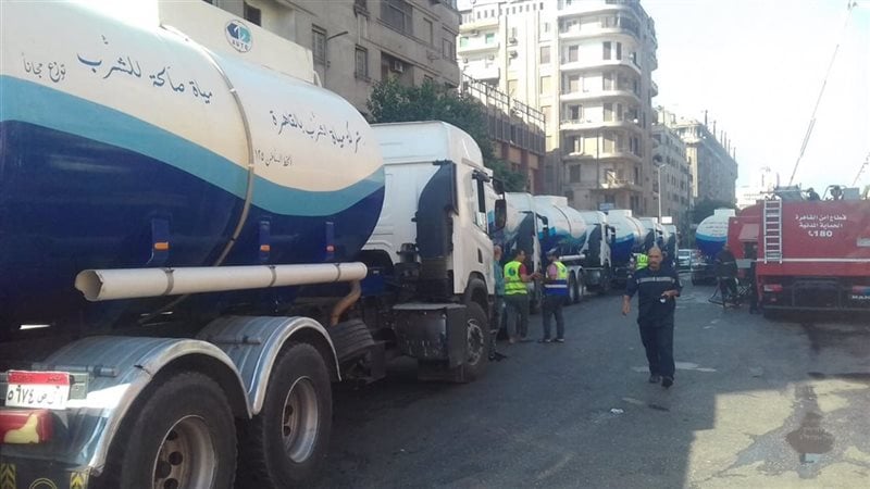 من جانبه، أوضح المهندس مصطفى الشيمي، رئيس شركة مياه الشرب بالقاهرة الكبرى، أنه تم الدفع بأكثر من 10 سيارات مياه سعة 15 مترًا مكعبًا، تمركزت بمحيط الحريق لتوفير الإمداد المائي اللازم لفرق الإطفاء، مؤكدًا استمرار رفع درجة الاستعداد وتواجد الحملة الميدانية لحين انتهاء أعمال الإطفاء بشكل كامل.