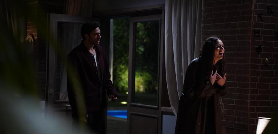 عند وصولها للفيلا، تكتشف المفاجأة الأكبر: في الحديقة المظلمة ترى زوجها مازن يحتضن ياسمين في لحظة رومانسية. تقتحم المشهد غاضبة وتصرخ: “انت بتخوني مع أقرب صاحبة ليا وعشرة عمري يوم عيد جوازي!”، لكنهما ينكران ويطلبان منها الهدوء، لترد على ياسمين بحدة: “انتي مريضة”، وعلى مازن: “ناقصك إيه علشان تخوني؟”، ثم تتوعدهم وتتركهم وتخرج إلى سيارتها باكية.