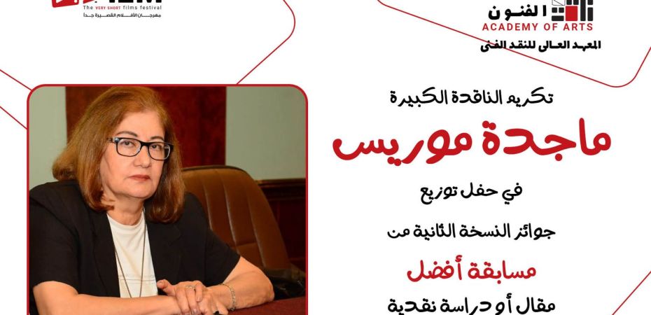 تكرم أكاديمية الفنون ومهرجان VS-FILM الناقدة السينمائية الكبيرة ماجدة موريس في حفل توزيع جوائز النسخة الثانية من مسابقة أفضل مقال أو دراسة نقدية عن الأفلام القصيرة جدا المقرر لها يوم 14 أكتوبر المقبل بقاعة ثروت عكاشة بمقر الأكاديمية بالهرم .