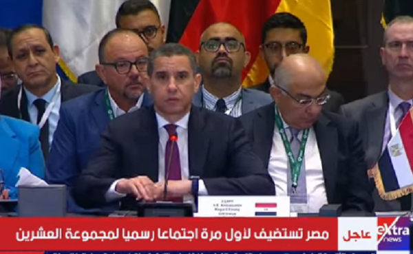 وخلال كلمته، أكد السفير راجي الإتربي، الممثل الشخصي لرئيس الجمهورية لدى مجموعة العشرين، أن أزمة الغذاء العالمية تمثل تحديات كبيرة، خاصة مع التغير المناخي.