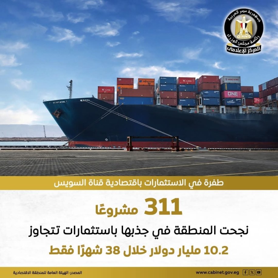 بفضل موقعها الاستراتيجي وخططها المتكاملة في البنية التحتية والخدمات اللوجستية، نجحت المنطقة الاقتصادية لقناة السويس خلال 38 شهرًا في جذب 311 مشروعًا باستثمارات تتجاوز 10.2 مليار دولار، مدعومة بـ 6 مواني بحرية و4 مناطق صناعية كبرى وحزمة متنوعة من الحوافز والتيسيرات للمستثمرين.