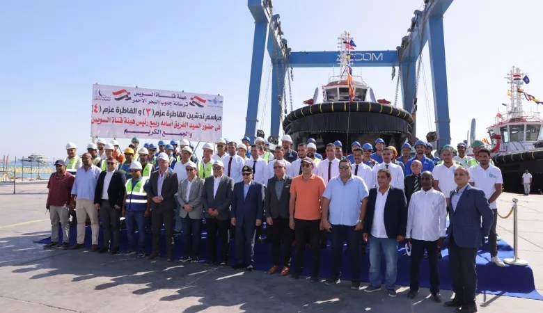 شهد الفريق أسامة ربيع رئيس هيئة قناة السويس، ومصطفى الدجيشي رئيس شركة ترسانة جنوب البحر الأحمر، اليوم الأربعاء، تدشين القاطرتين “عزم 3″ وعزم4” من إنتاج مصنع “مصر لبناء القاطرات” بسفاجا ضمن خط الإنتاج الأولي لبناء 10 قاطرات بحرية للعمل لصالح هيئة قناة السويس، وذلك بحضور عدد من أعضاء مجلس إدارة الهيئة، وقيادات الترسانة والعاملين بها.