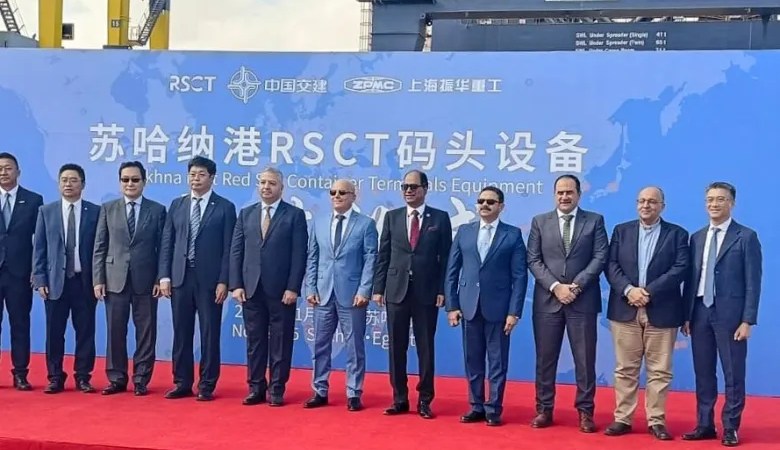شهدت المنطقة الاقتصادية لقناة السويس، اليوم بميناء السخنة، مراسم تسليم 24 وحدة من معدات مناولة الحاويات الحديثة بمحطة شركة البحر الأحمر للحاويات (Red Sea Container Terminal – RSCT) التابعة لمجموعة هاتشيسون للموانئ (Hutchison Ports)، بعد اكتمال عمليات التصنيع والتوريد من قبل شركة شنغهاي تشنغخوا للصناعات الثقيلة (Shanghai Zhenhua Heavy Industries – ZPMC)، إحدى شركات مجموعة الصين للاتصالات والإنشاءات المحدودة (CCCC).