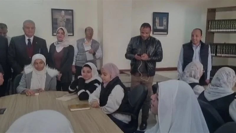 واستمع رئيس الوزراء خلال إلى إنشاد أطفال خلال جولته داخل مكتبة مصر العامة في طحانوب بمحافظة القليوبية.