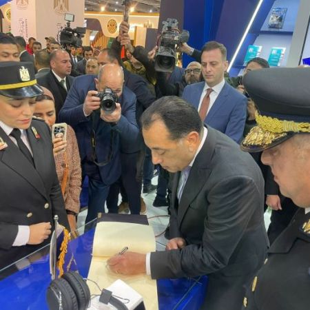 مدبولي يكتب كلمة تذكارية لجناح وزارة الداخلية بمعرض الكتاب