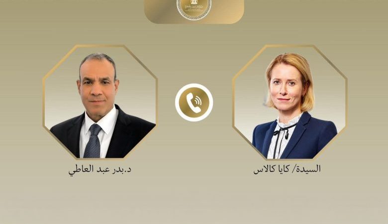 أجرى الدكتور بدر عبد العاطي، وزير الخارجية والهجرة وشئون المصريين بالخارج، اتصالًا هاتفيًا مع كايا كالاس، الممثلة العليا للشئون الخارجية والسياسة الأمنية للاتحاد الأوروبي، تناول العلاقات المصرية – الأوروبية، إلى جانب التطورات الإقليمية وسبل خفض التصعيد في المنطقة.