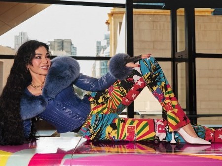 إطلالة ملفتة للفنانة هيفاء وهبي ببنطلون به بعض الرسومات الغريبة