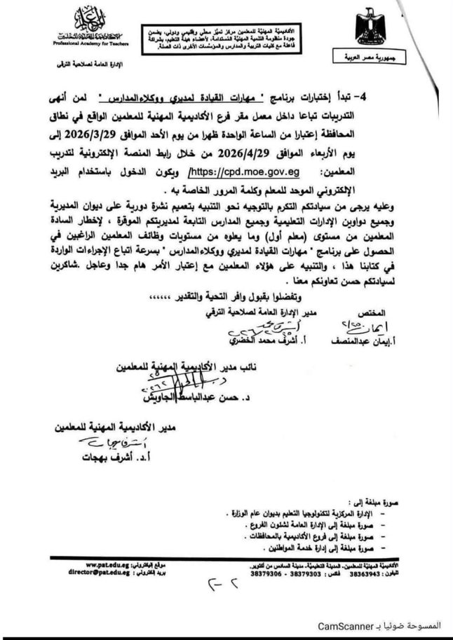 وأكدت الأكاديمية ضرورة الالتزام بالمواعيد المحددة وسرعة استكمال الإجراءات، نظرًا لأهمية شهادة الصلاحية كشرط أساسي لشغل وظائف القيادة المدرسية.