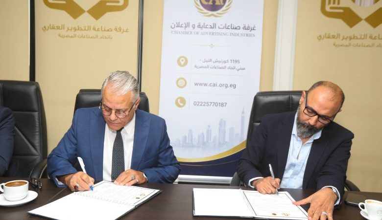 وقعت غرفتا صناعة التطوير العقاري وصناعات الدعاية والإعلان، بروتوكول تعاون مشترك، وذلك في إطار دعم التكامل بين القطاعات الاقتصادية وتعزيز كفاءة الخدمات التسويقية والإعلانية المقدمة للشركات الأعضوقّع البروتوكول عن جانب غرفة صناعة التطوير العقاري المستشار أسامة سعد الدين المدير التنفيذي للغرفة، فيما وقّع عن غرفة صناعات الدعاية والإعلان الدكتور هيثم عرفان نائب رئيس مجلس الإدارة.
