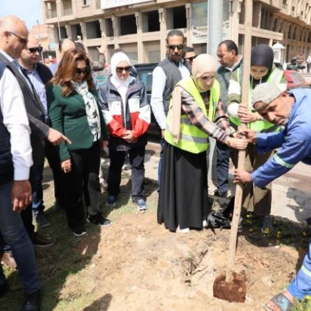 وزيرة التنمية المحلية والبيئة ومحافظ الإسكندرية يتفقدان أعمال زراعة الجزيرة الوسطى بشارع مصطفى كامل