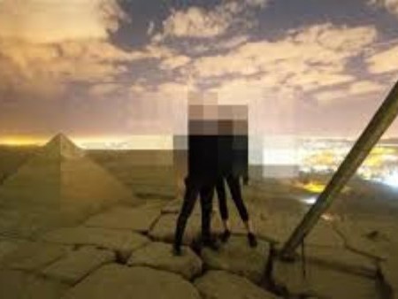 إسباني وصديقته يخلعان ملابسهما داخل المنطقة الأثرية بالهرم